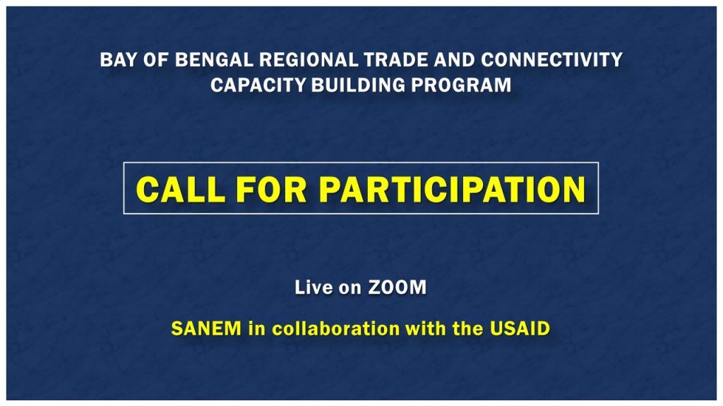 South Asian Network on Economic Modeling (SANEM), in collaboration with the USAID and U.S. Department of State-funded Cross-Border Infrastructure and Connectivity project, has launched the “Bay of Bengal Regional Trade and Connectivity Capacity Building Program” for relevan [....]